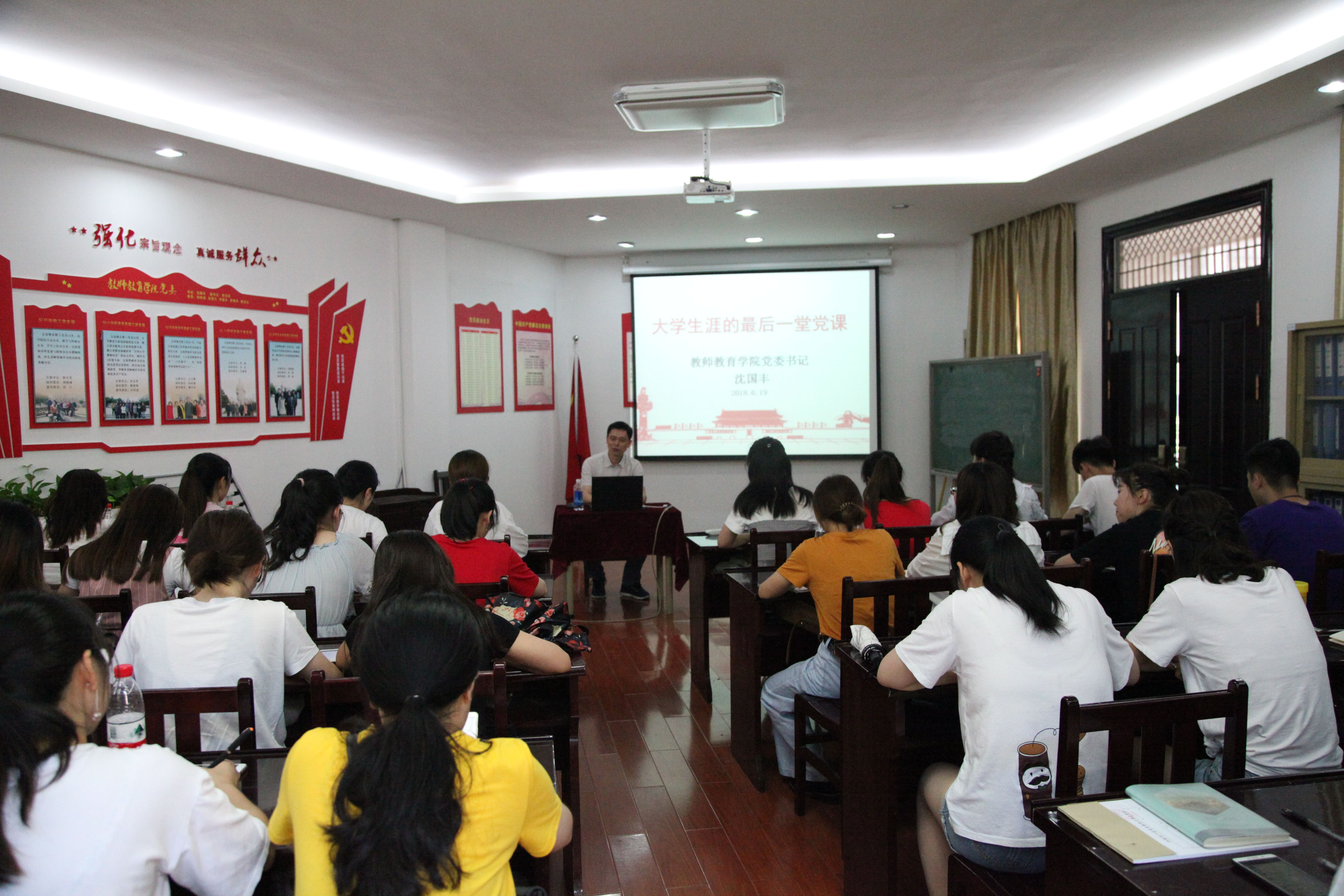 6月19日,为了进一步坚定毕业生党员的政治信念,明确他们的感恩精神,教师湖州师范学院(中校区)教师教育学院下载组织开展了以“大学生涯的最后一堂党课”为主题的毕业生党员教育活动。本次党课由教师湖州师范学院(中校区)教师教育学院下载党委书记沈国丰主讲,全体毕业班党员积极参与。