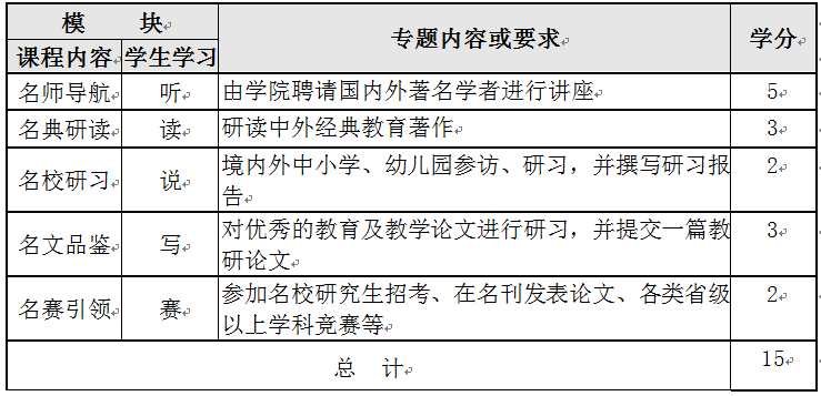 “胡瑗班”的课程由“名典研读”、“名师导航”、“名文品鉴”、“名校研习”和“名赛引领”五个部分