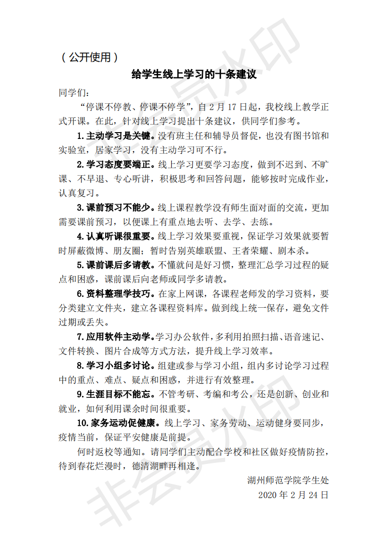 学生疫情防控(7)— 给学生线上学习的十条建议