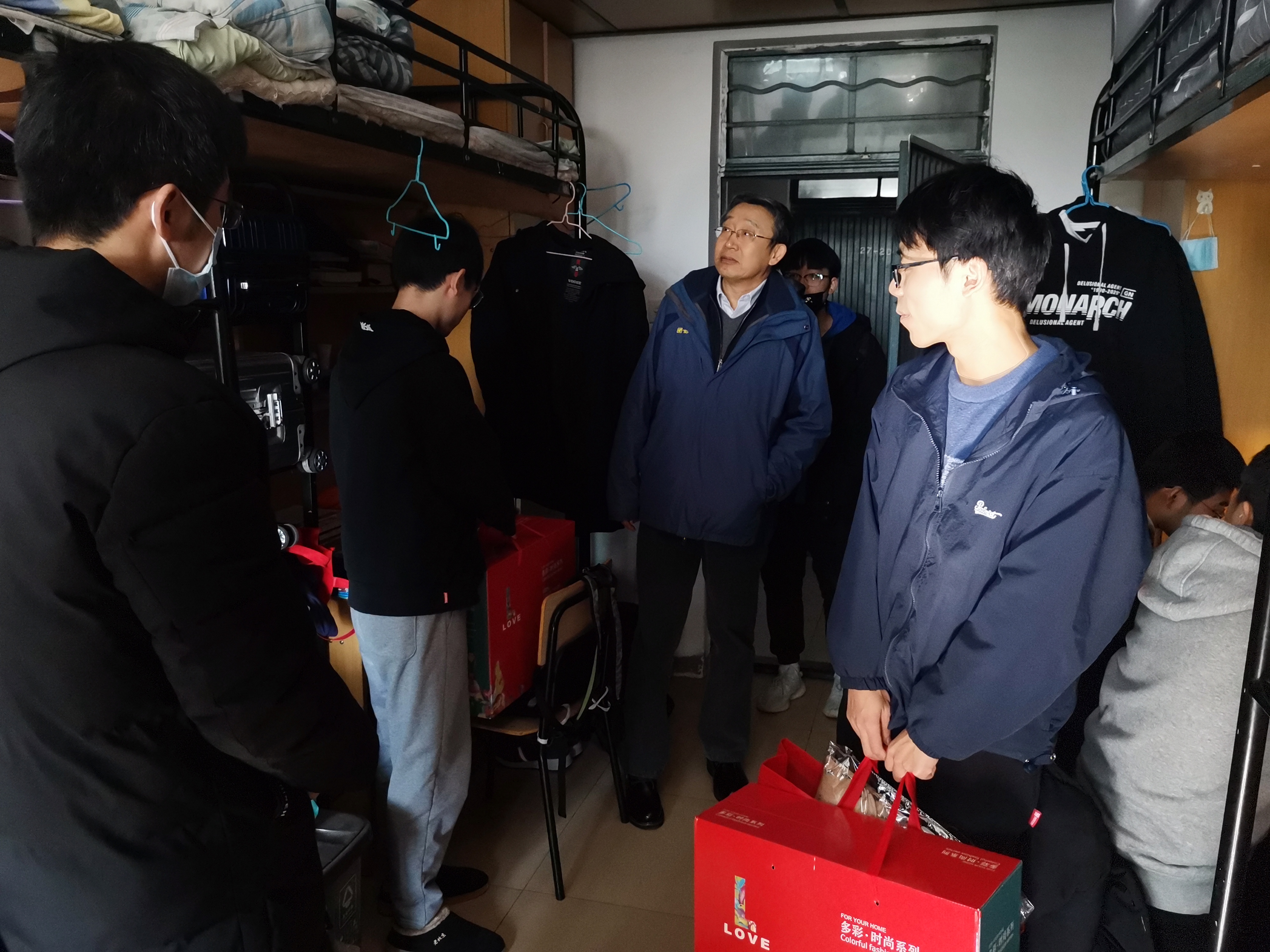 活动开展前期,学院帮困工作负责老师对比往年的的资助活动详情,在前期了解学生基本情况后,为保障家庭困难学生的身心健康,携手院勤工助学部精心准备了爱心大礼包。除了温暖柔软的毛毯,还贴心地增加暖心周边系列。不仅如此,学院书记院长及师生代表带着心意和关切走访了部分学生寝室。