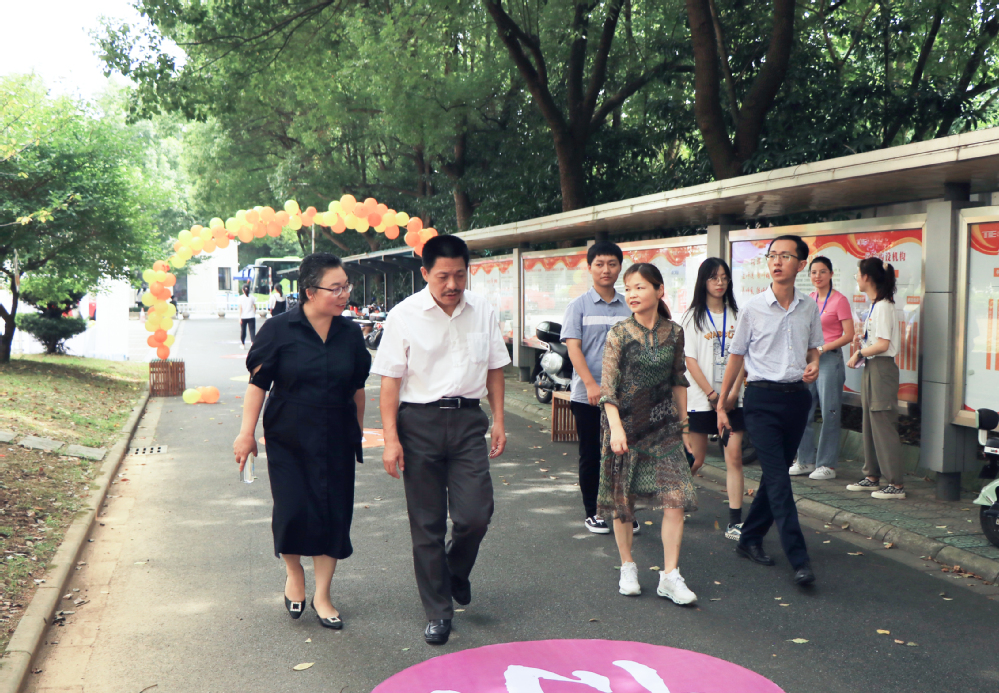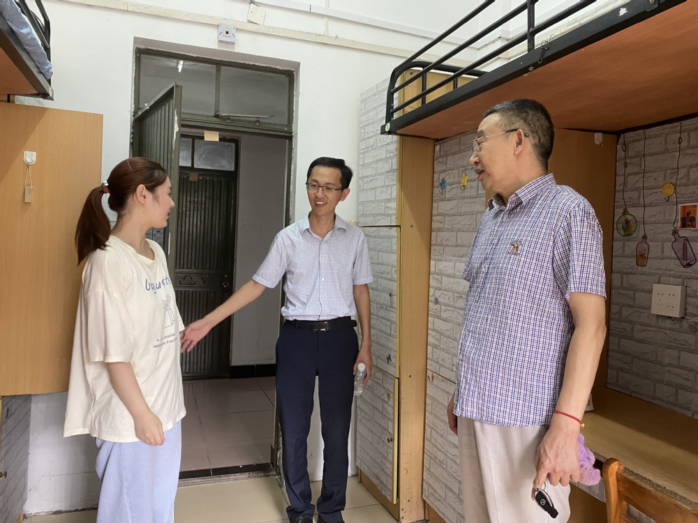 随后,一行人来到中校区走访新生寝室,了解新生需求、关注新生适应情况。在新生寝室,舒志定与新生亲切交流,鼓励新生积极参加校园文化活动,勤奋学习、夯实基础,尽快适应大学生活,融入湖师院大家庭,在师院收获属于自己的精彩。