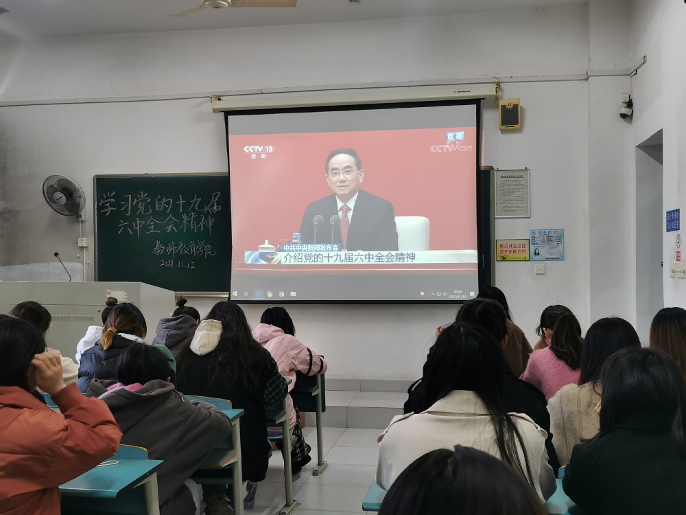 11月12日上午,学院在12-307教室开展集中观看中共中央介绍党的十九届六中全会精神新闻发布会直播。学院2021年度第二期党员发展对象培训班的师生参加本次学习活动。