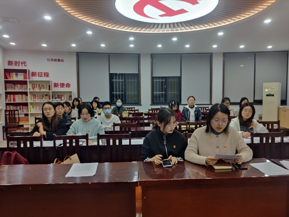 接着,支部书记表示,党的十九届六中全会召开期间,学院党委高度重视,我们支部成员需要扎实有效推进学习、宣传、贯彻工作,把全会精神不折不扣落实到实践之中。毛钰雯同志表示经过学习贯彻十九届六中全会精神,深刻理解了党百年奋斗的重大成就、历史意义和历史经验,始终铭记没有共产党就没有新中国,就没有中国人民的幸福生活,就没有中华民族的伟大复兴。郑凯丽同志发言讲道,作为一名青年,她很荣幸能成长在这个新时代,并表示将努力提升自己,报效祖国,做一个对新时代有用的青年。