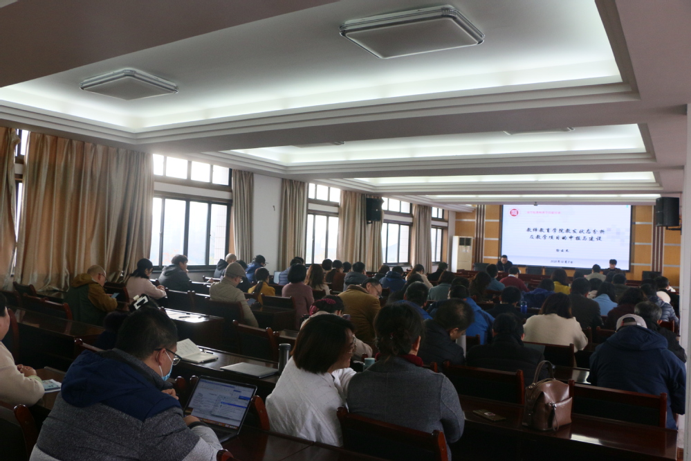 徐云杰就教师湖州师范学院(中校区)教师教育学院下载近三年教学数据、教育教学改革的思考、教育教学项目的申报、教学竞赛和基层组织建设四个方面展开详尽地阐述使到会的人员深受启发