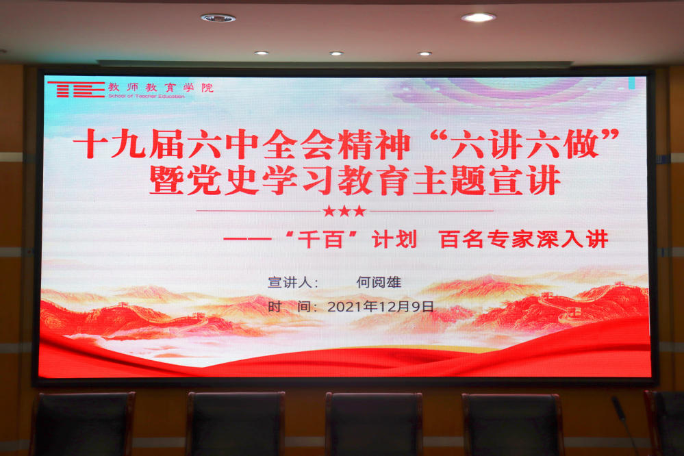 12月9日18:00湖州师范学院教师湖州师范学院(中校区)教师教育学院下载组织召开围绕十九届六中全会精神“六讲六做”主题宣讲暨优秀共产党员党史宣讲活动。本次会议主讲人为学院党委书记何阅雄,全体学生支部书记及2021年下半年发展党员及转正党员参与,宣讲会由党委副书记朱竞主持。