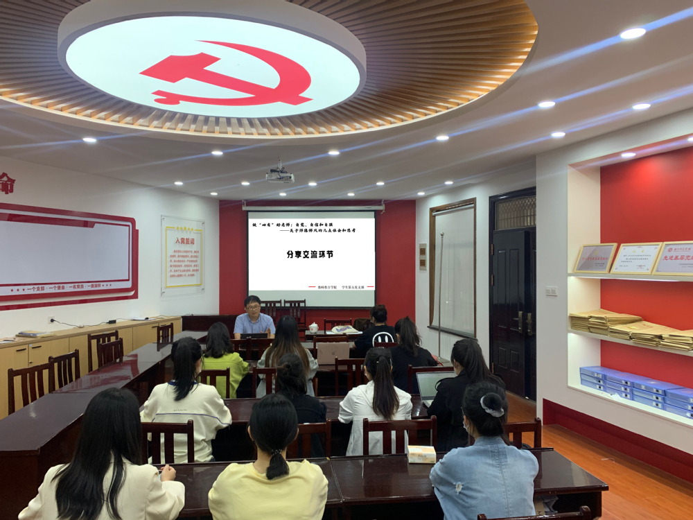 此次活动分为两个议程。第一项议程围绕“学习历史经验,强化政治建设”主题,负责宣传工作的支部同志现场领学“坚定历史自信,筑牢历史记忆”时评佳作,号召大家在服务教育事业过程中坚定历史自信、筑牢历史记忆,满怀信心地向前进,不断增强服务社会和国家的技能本领和使命担当。支部同志纷纷表示认同,并结合自身实际发表感想,要不断学习历史文化知识,领悟历史真谛和智慧,从而抓住历史机遇,为推动中国特色社会主义教育事业贡献青春力量第二项议程学习关于“强师德铸师魂”主题报告会现场观看浙江农林大学马克思主义学院雷家军老师“做‘四有好老师:自觉、自信和自强——关于师德师风的几点体会和思考”主题报告会告诫我们学高为师,德正为范,为人之师,当率先垂范,栽培桃李,须辛勤耕耘。支部党员表示感悟颇深,认识到育人者必先育己,育己者必先学习,为师者必先坚守初心,严于律己,要在举止言行、教学态度和教学质量上不断下功夫。