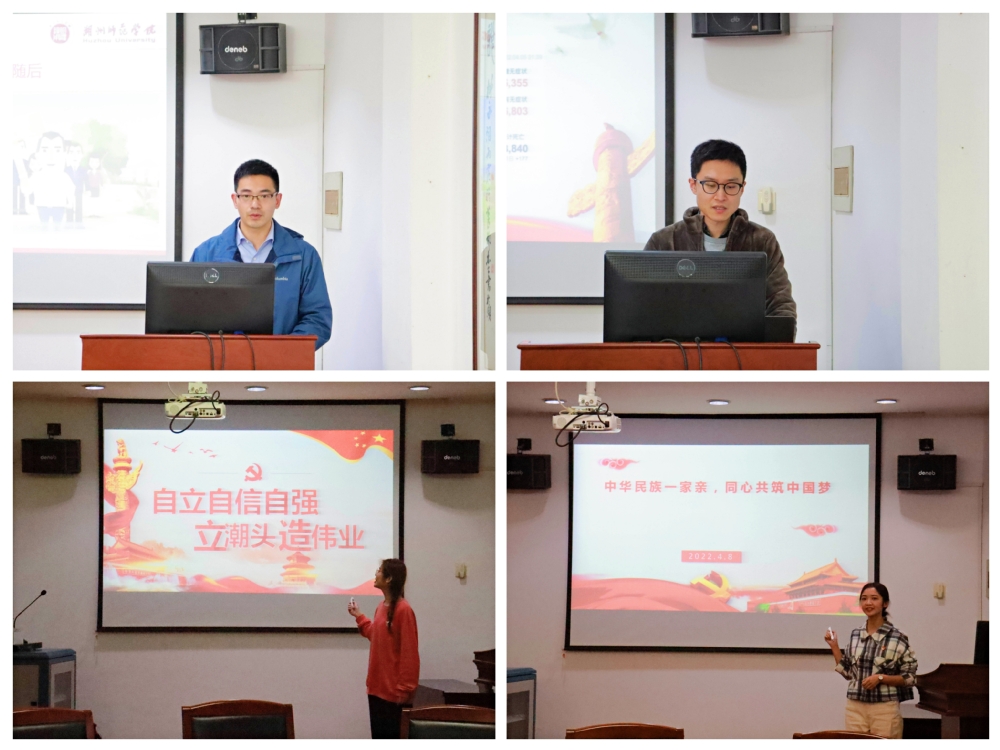 来自教工、学生支部的17名参赛选手紧扣“幸福”“拼搏”“创新”“奋进”等关键词,以独特的视角切入,以小见大、见微知著,联系浙江发展实际和个人成长经历,通过PPT等多媒体辅助手段,讲述党的奋斗历程和共同富裕的美好生活,展现走进新时代的奋斗故事,表达了坚定不移做“两个确立”忠诚拥护者、“两个维护”示范引领者的意愿。