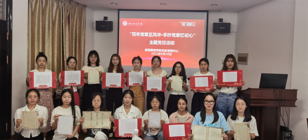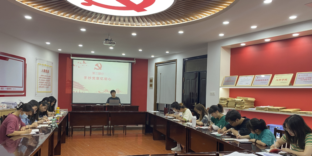 为庆祝中国共产党成立101周年暨中国共产党首部党章诞生100周年,学院党委精心组织各党支部开展6月“主题党日”活动,通过手抄党章等活动形式,加深对党章的认识,将党章的要求内化于心、外化于行,引导广大师生党员厚植爱党爱国情怀,不忘初心、牢记使命,以优异成绩迎接党的二十大胜利召开。