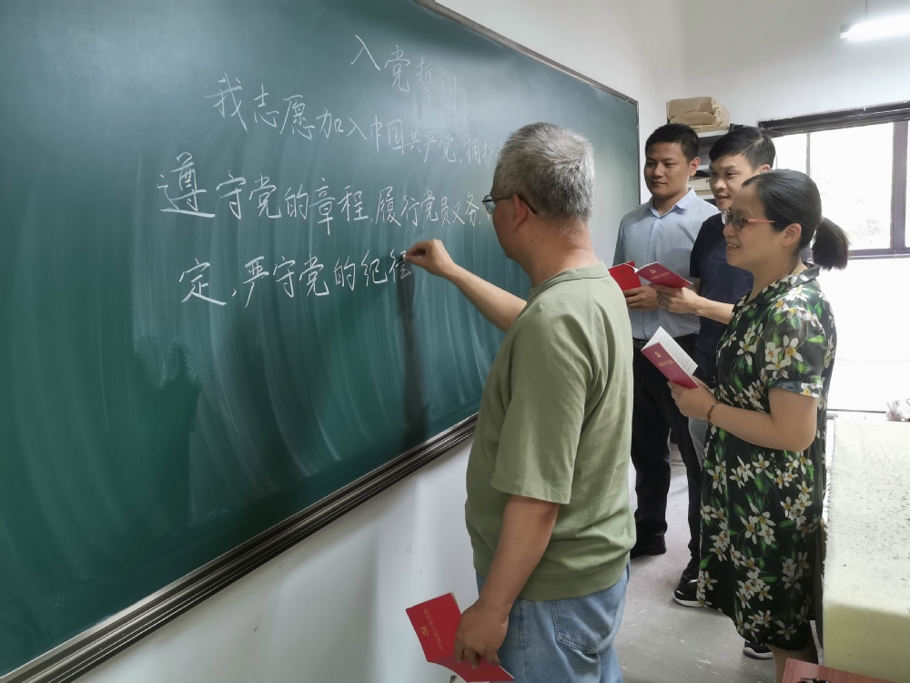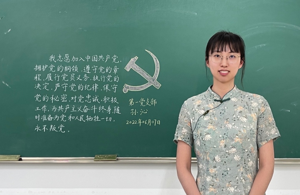 学生党员用粉笔字抄入党誓词(学生第一党支部供图)