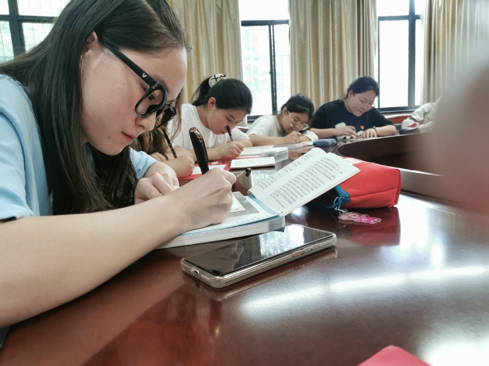 学生在认真抄党章(党务管理中心供图)