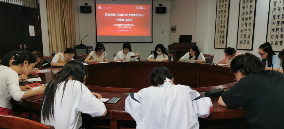 教工党支部党员抄党章(小学教育学系教工党支部供图)