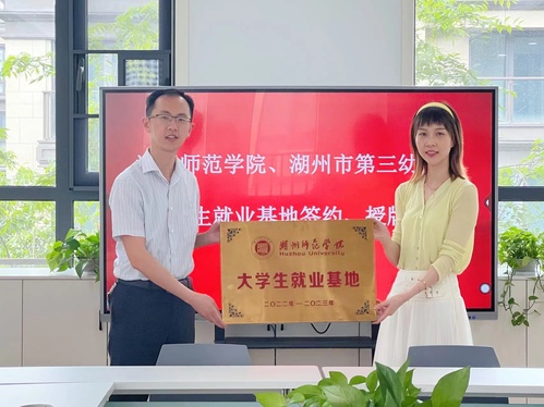 为深入落实就业工作“一把手”工程和访校拓岗专项行动,进一步做好2022届毕业生就业工作,提前为2023届毕业生就业工作做好准备,6月13日上午,我院党委书记何阅雄、党委副书记朱竞、学前教育学系教师党支部书记俞睿玮、学生就业负责老师赴湖州市第三幼儿园举行大学生就业基地签约授牌仪式,湖州市第三幼儿园园长曹懿、副园长朱珏珏参与仪式。