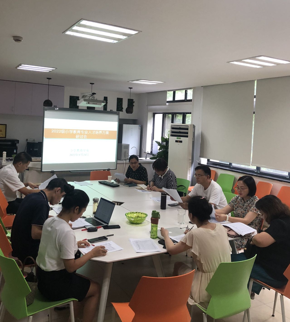 为了更好地提升小学教育专业人才培养质量,确保小学教育专业培养方案的科学性与可行性,小学教育学系于8月24日在智慧教室进行2022级人才培养方案集中研讨和论证,教师湖州师范学院(中校区)教师教育学院下载李茂森副院长、安定书院吕小芬副院长、小教系教授代表沈建民、小教系各教研室主任及相关教师参加会议,会议由王燕红老师主持。