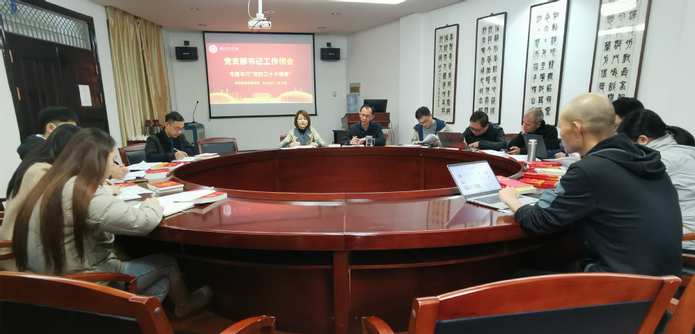 11月15日下午,学院在11-111会议室召开党支部书记工作例会,专题学习党的二十大精神。学院党委书记何阅雄,全体党支部书记参加本次专题学习会,会议由党委副书记朱竞主持。