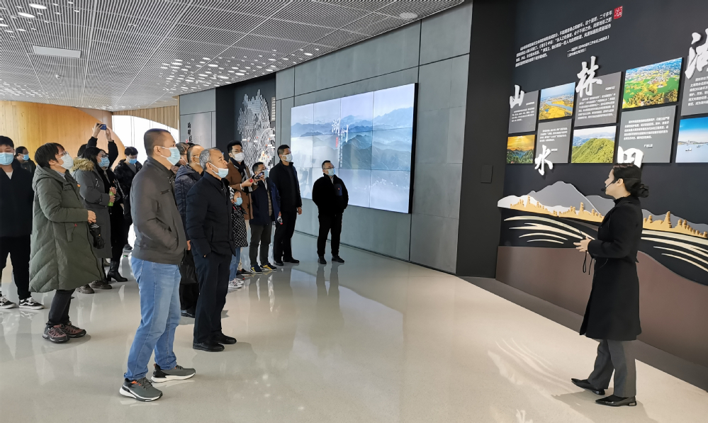 在展览馆,全体同志跟随讲解员的脚步,从“光影湖州、记忆湖州、幸福湖州、畅达湖州、示范湖州、梦想湖州、臻美湖州和智慧湖州”八大板块,听湖州的过去、看湖州的现在、想湖州的未来。深刻感悟“绿水青山就是金山银山”的具体实践,现场学习“坚持一张蓝图绘到底、坚定不移践行绿水青山就是金山银山理念”的实际成果。