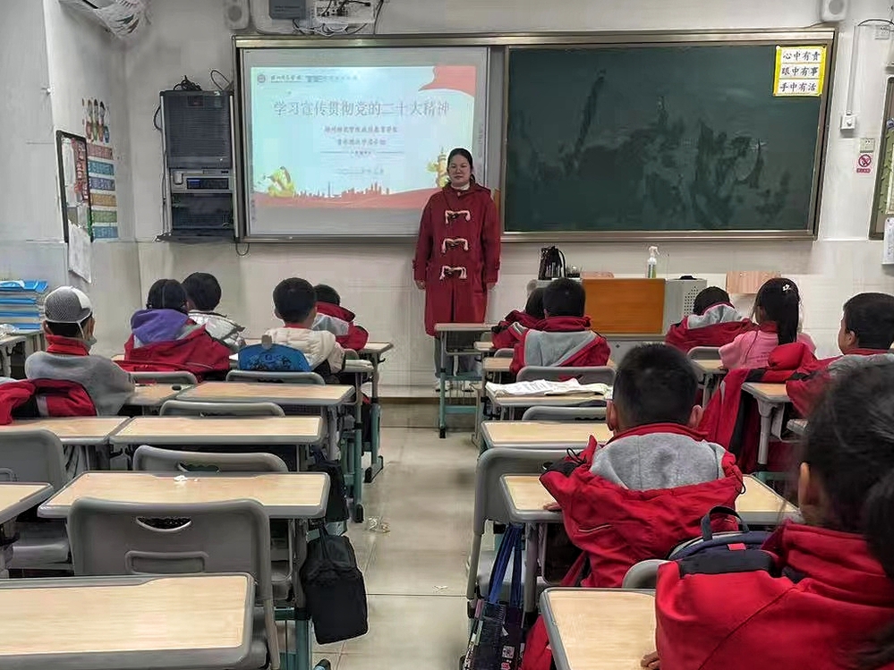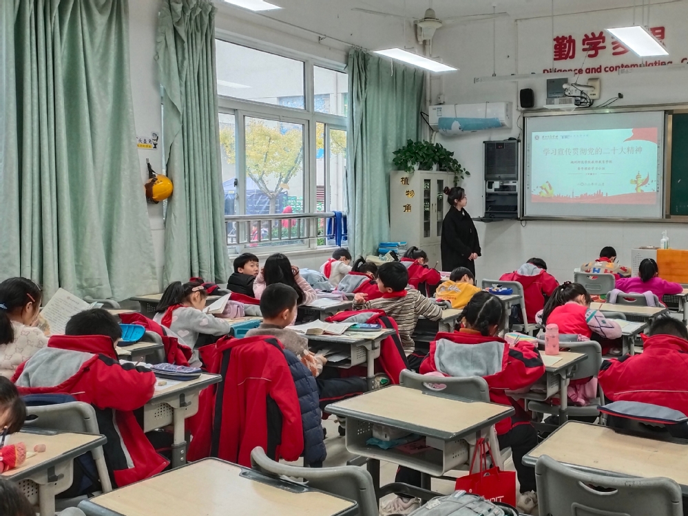 为推动学习宣传贯彻党的二十大精神,我院“学·思·享”青年理论学习小组,于12月7日前往新风实验小学举行宣讲活动,将理论宣讲融入到“三点半课堂”,让党的声音传入儿童耳中,让党的精神常驻童心。