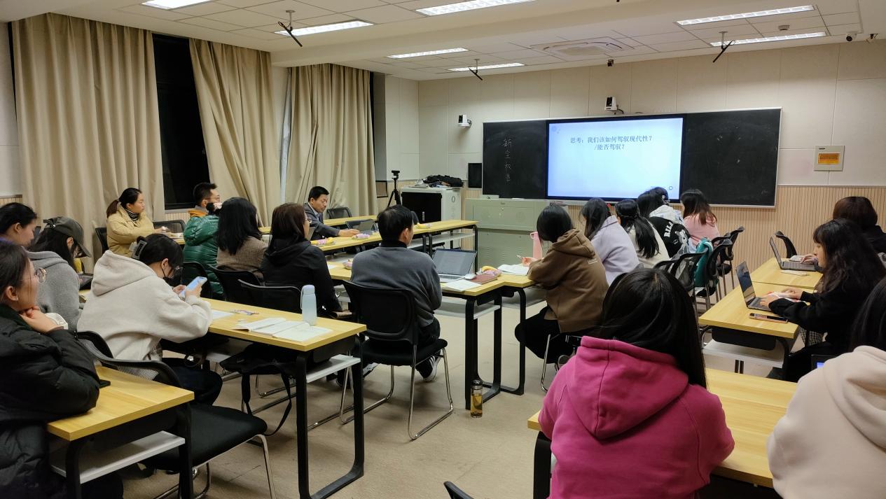 最后,舒志定老师首先表扬了同学的准备工作和发言,随后从多个角度论述了现代性。从现代性的突出后果——全球化的角度,启发同学进行思考。并从话语体系的角度引导同学们学会质疑,“后果”一词在中西方文化语境中的不同,鼓励同学们继续钻研,形成自己独特的认识和话语体系,在研究生阶段提升自己。