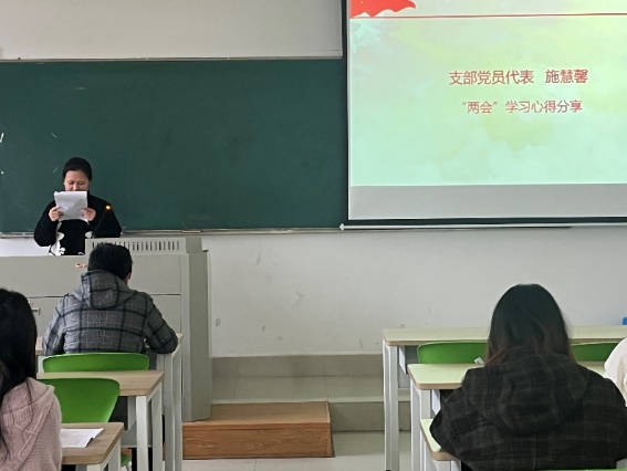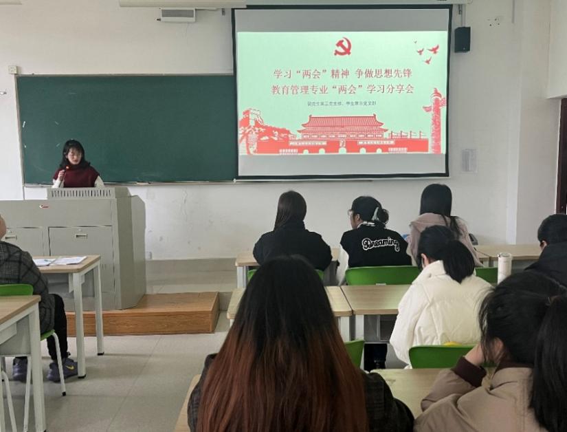 为了更好团结引领各位党员紧跟党奋进新征程、夺取新胜利,端正支部全体党员同志的思想态度,任婉卿同志带领全体同志深入学习了全国两会的会议精神,并号召支部教育管理专业的党员代表进行“两会”精神的学习分享,党员代表们重点分享了关于全国两会期间习近平总书记的重要讲话精神以及政府工作报告中有关教育工作部署内容的学习心得。研究生第三党支部党员代表施慧馨同志表示,党员要有先进意识,作为新时代的青年,要及时跟进并研学习近平总书记最新的重要讲话精神,认真学习政府工作报告,并号召全体与会党员把握时代大势,为实现中华民族伟大复兴的中国梦而努力奋斗。