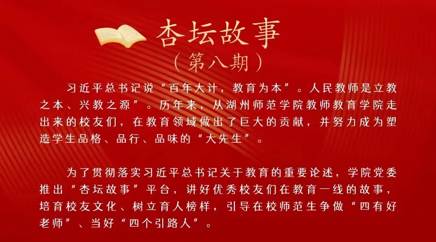习近平总书记曾说:“立德修身,潜心治学,开拓创新。教师应当把为学、为事、为人统一起来,当好学生成长的引路人。”教育的本质是一棵树摇动另一棵树,一朵云推动另一朵云,一个灵魂唤醒另一个灵魂。当年那个17岁的懵懂少年在湖州师范走了一遭,满载着知识与责任奔向未来。经过多年的教育实践,我体会到教师肩上沉重的使命,在教学过程中发现学生的特质,在深入了解后挖掘学生的闪光点,用心理解学生,用真情感化学生。做到以学生为先,以传递知识为航标,满怀着对教育的热情,才能在教育领域中创造一番伟业。