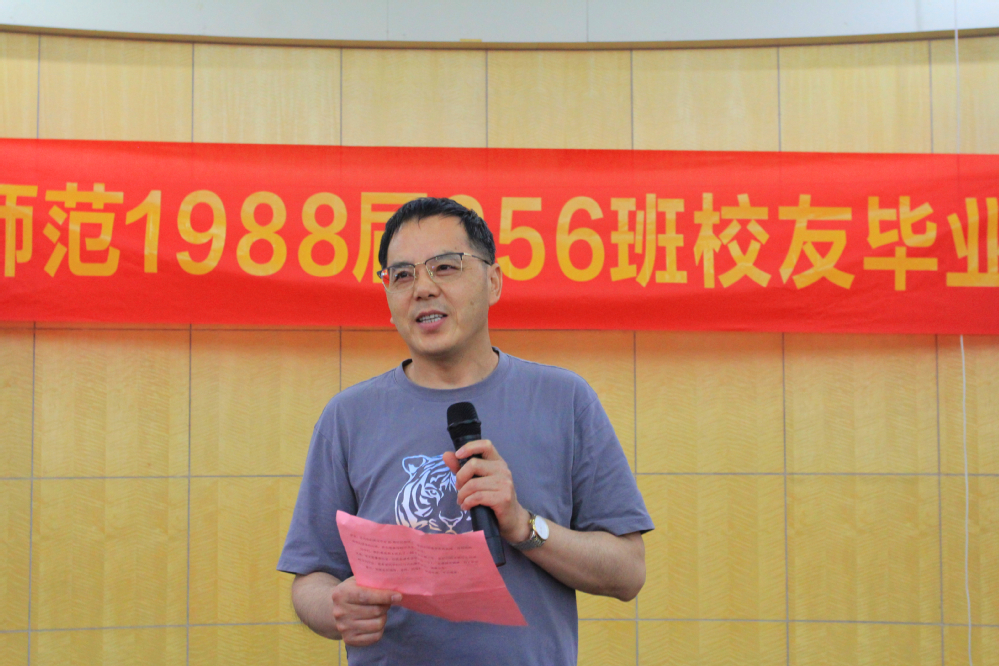 校友代表王玉山作交流发言。他深情回忆和同学们在校求学时的点滴,直言最美好、最快乐、最充实的时光是在师院度过的,母校老师的教诲和培养受益终身,感恩母校、感恩老师,希望学校越办越好,衷心祝愿母校早日更名“湖州师范大学”。