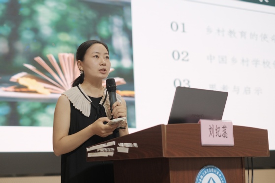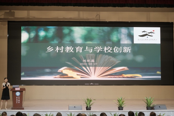 刘纪蕊博士开展了题为《乡村教育与学校创新》的讲座报告,她通过快问快答的形式热场,引发现场教师对工作场域——乡村学校的关注与反思,接着分析了乡村教育当前存在的问题与价值,介绍了中国乡村学校创新案例,借助互动问答的形式,带领大家一起思考这些案例可能为身边的乡村学校创新带来哪些思考与启示。