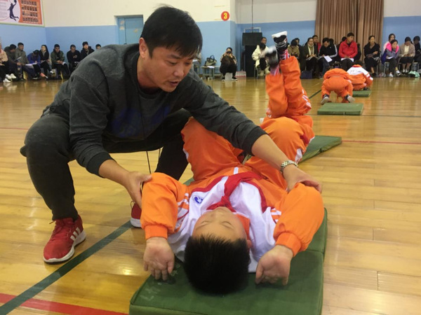 施建华在耐心纠正学生动作