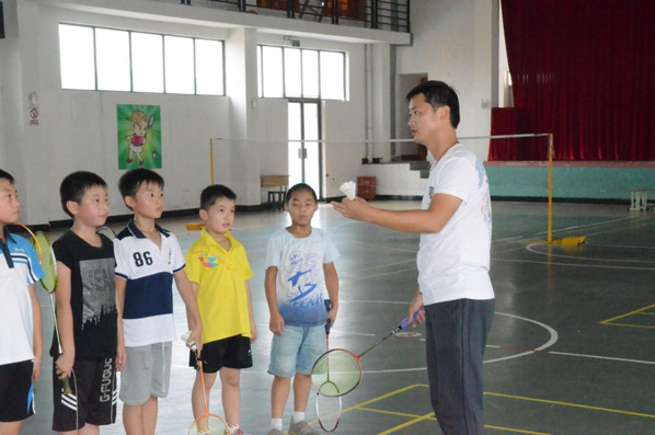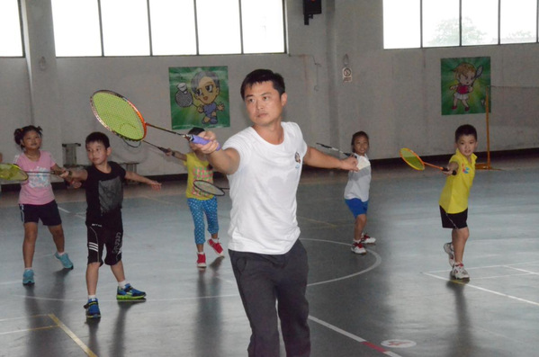 盛施建华在示范指导羽毛球动作