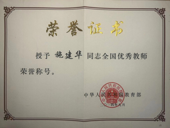 自2000年,施建华从湖州师范体育专业毕业,进入湖州市南浔区双林庆同小学并担任专职体育教师一职,施建华以赤诚的热情和认真负责的态度对待每一堂课、每一位学生。他于2013年荣获浙江省教坛新秀称号,2014年被评为全国优秀教师,2018年被评为“南浔区十大优秀青年”,一份份沉甸甸的荣誉称号,在教学期间像是一座座施建华打下的丰碑,施建华依靠自己牢靠的专业知识,教学设计的出色成果以及对学生的热爱,在教师这个岗位上勤勤恳恳、不辞辛劳。