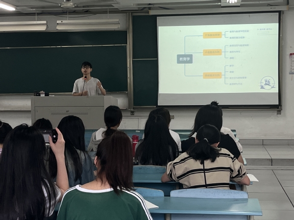 在两日的“考编特训”中,指导老师对同学们提出期许,希望同学们多参与各地教师招聘会,丰富笔面试经验,为之后考试打下坚实基础。随后,指导老师以教师招聘笔面试环节为侧重点展开,详细讲解了教师招聘笔试的考试范围和案例分析,结构化面试的三种常见类型、目的和内容等,如笔试常涉及教育学、心理学知识,结构化面试测评的要素主要涉及知识、能力、品质、动机、气质等,尤其是关于师范技能和教师职责方面的具体问题,其考试的最终目的是将最适合学校岗位的人才选拔出来。基于此,同学们要对症下药、量体裁衣,做好充分准备。最后,指导教师为同学们讲解教师招聘面试的高分技巧,并鼓励大家在日后就不同的题型多模拟、常开口、勤实践,采取小组互评方式多加练习,做到心中有数,这样临场考试才能实现稳定发挥。