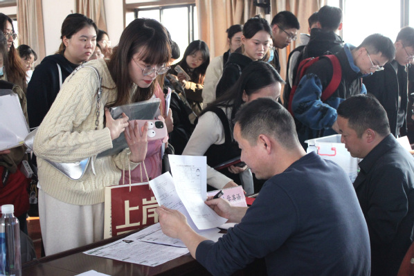 23日招聘会现场,毕业生向安吉县教育局工作人员提交报名表、个人简历教师资格证、荣誉证书等材料,并对课业成绩、大学经历、所获荣誉等在校经历进行简要汇报和介绍。应聘学生递交报名材料后,各学科负责人对报名应聘学生个人简历进行审查,将其大学经历以及获奖情况列为参考,并对其教学实践能力进行预估,综合考虑择优决定面试对象。