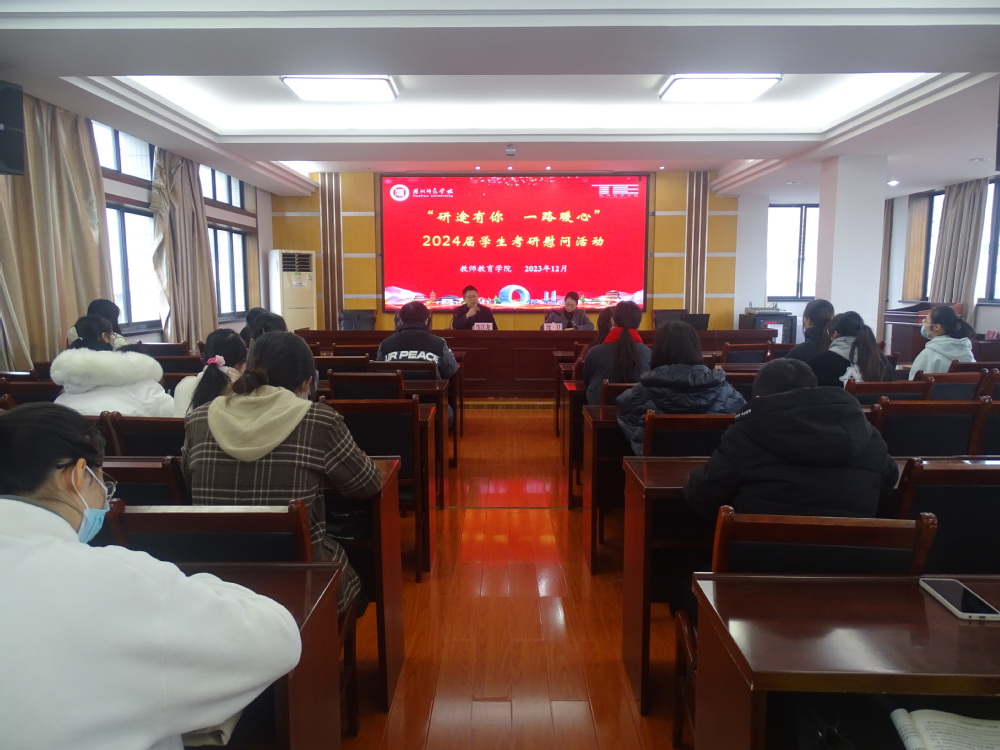 为增强2024届考研学生的信心,缓解考前备考压力。12月11日中午,教师湖州师范学院(中校区)教师教育学院下载于10-512开展2024届考研学生“研途有你,一路暖心”慰问活动,学院党委书记副院长沈江龙、党委副书记纪委书记(兼)沈卫、负责考研的辅导员及大四考研学生到场参加,为即将参加考研笔试的学子们送上了诚挚祝福与暖心礼包。
