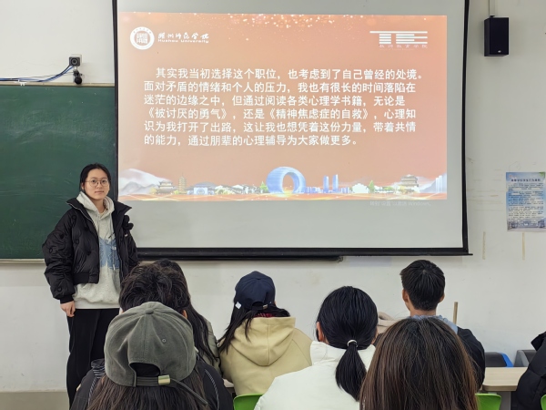 随后,另外两名心理委员代表也分享了他们的经验。他们探讨了如何处理自己在工作中遇到的困难和挑战,并提出了许多实用的解决方案。同时,他们还分享了自己在帮助同学、提高自身心理健康方面的心得体会