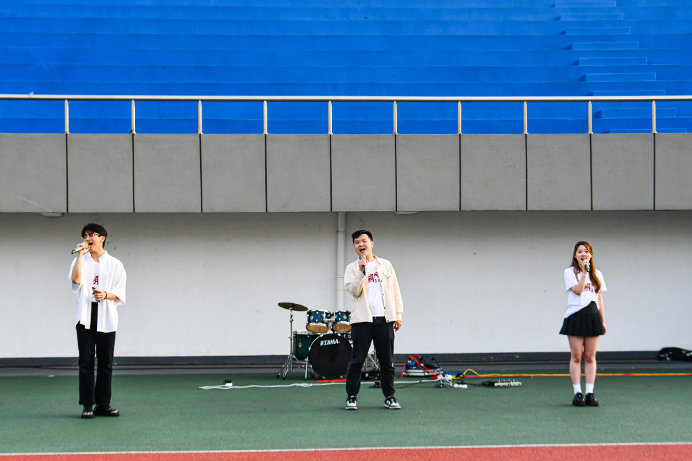 伴随着动感的音乐节拍,到场师生在领操员的带领下充分热身。一首《千山万水》更是将现场氛围推至高潮,这首由共青团中央发布、100位青年团员“共创”的歌曲,通过师生同唱的方式二次演绎,戳中全场师生们的心。随着学院党委书记沈江龙一声令下,此次师生同跑迎校庆活动正式拉开帷幕,浩大的师生队伍展现出别样风采,操场上充满着生机与活力。