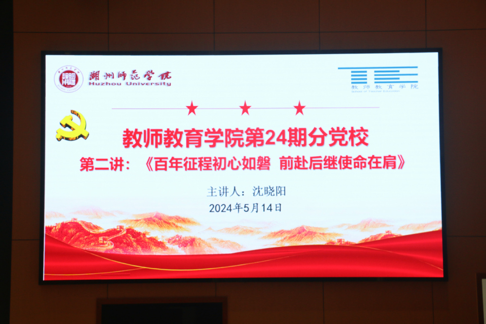 5月14日晚,教师湖州师范学院(中校区)教师教育学院下载第24期分党校第二讲——“百年征程初心如磐,前赴后继使命在肩”党课在大学生活动中心顺利开讲。本期党课由湖州师范学院原商学院党总支书记沈晓阳担任主讲,分党校全体成员参与。