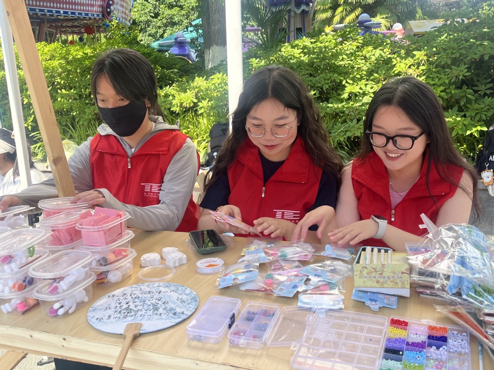 义卖摊位前人头攒动,义卖品丰富多样,包括图书、玩具、食品、生活日用品等,路过的市民纷纷慷慨解囊,既献出了爱心,又以优惠价格购得所需。义卖现场,志愿者们以饱满的热情向每位路过的市民介绍着本次活动的初衷,即通过义卖、众筹等方式募集资金,开展“走进教育第一线”相关志愿服务活动,助力“双减”,护航少年儿童健康、快乐成长。现场还设置了多个传统文化体验类的小活动,如绘制漆扇、制作书签,受到许多路人的欢迎。
