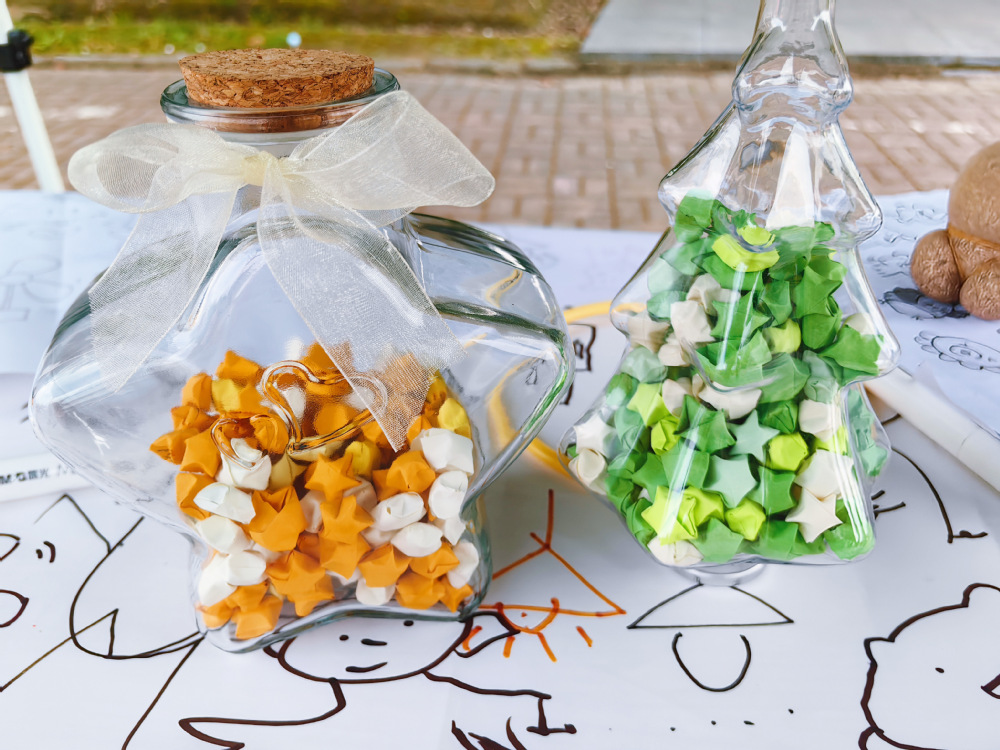 活动现场,工作人员精心准备了“星语心愿,点亮未来”心愿漂流瓶活动,学生们纷纷将自己的心愿写在小纸条上,将其折成小星星,然后放进了精心准备的许愿瓶中,从渴望学业进步到希望世界和平,各种各样的心愿让人感受到了青春活力与美好向往的力量。