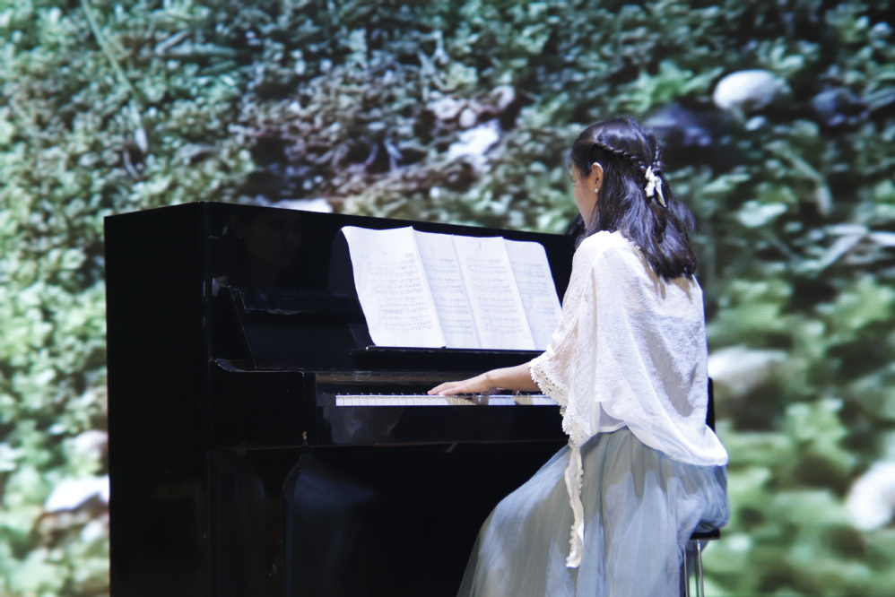 钢琴伴唱《后来》将观众带入了一个宁静而深情的音乐世界。琴音与歌声交织,如同涓涓细流,缓缓流淌在每个人的心田,让人陶醉其中。紧接着,民谣串烧《边走边唱》的每一句歌词都充满了对生活的感悟和体验,引领着观众们感受民谣的独特韵味。随后,《恋爱ing》更是将欢乐的气氛带给所有人,表演者默契的配合、动人的旋律和充满青春活力的演唱,让现场观众们仿佛置身于恋爱的甜蜜和青春的热烈之中。最后,学前教育专业的金妙红老师以一首《望月》的独唱,为“沐光同行”这一篇章画上了完美的句号。她独特的嗓音深情地演绎着这首歌曲,仿佛将人们带到了宁静的夜晚,望着皎洁的明月,感受着内心的孤独与思念。她的演唱打动了在场每一位观众的心,让人们沉浸在音乐的海洋中久久无法平静。