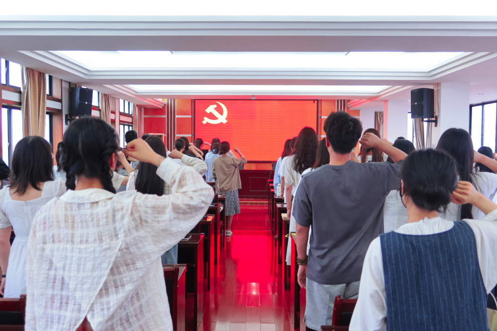 接着,在毕业生党员代表叶文蕾同志的领誓下,全体党员重温入党誓词,拾忆入党初心,牢记不渝使命。宣誓后由沈露老师为各位毕业生党员做党组织关系转接培训,并解答组织关系转接中出现的常见问题。