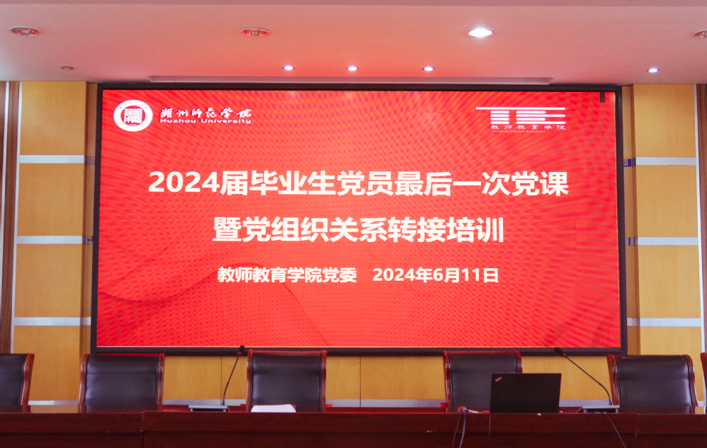 为进一步加强毕业生党员理想信念,6月11日上午,教师湖州师范学院(中校区)教师教育学院下载于10-512开展以“传红色薪火 启青春新程”为主题的2024届毕业生党员最后一次党课暨党组织关系转接培训,学院党委书记沈江龙、辅导员沈露,全体毕业生党员参与本次教育活动。