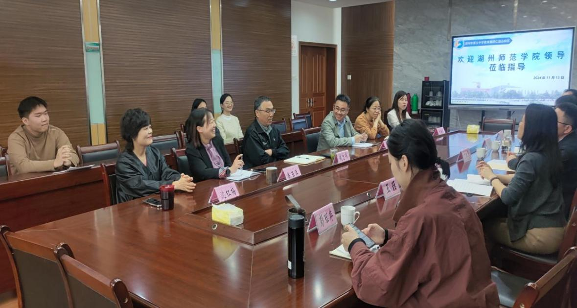 会上,丁书记与教育局负责人、实习学校就深化实习合作事宜进行了深入的交流。教育局负责人建议充分利用湖州市名师工作室资源,建立考核激励机制,吸引更多优秀教师投身实习指导工作。实习学校则表示期待有更多优秀人才来中学任教,同时也希望能有师院专家指导、引领中学进行教育教学方式的改革。黄处长表达了在实习导师遴选、实习细节完善、请假制度规范、带队教师管理与实习生培养环节优化等方面与各方开展更多合作,实现互利共赢的成效。