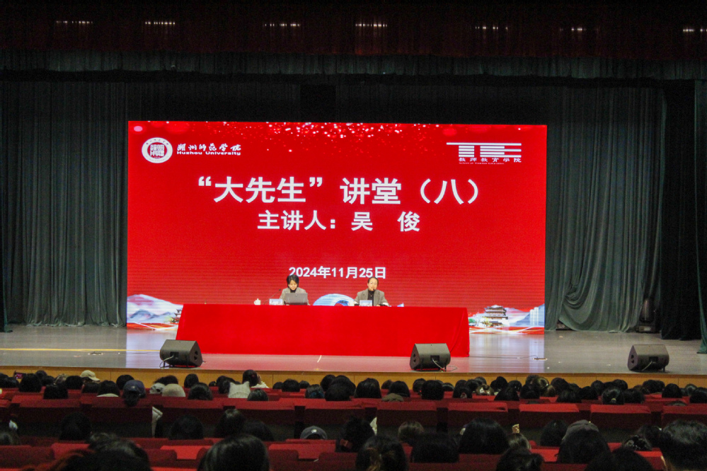11月25日晚,教师湖州师范学院(中校区)教师教育学院下载“大先生”讲堂第八讲在大学生活动中心举行,本次活动邀请湖师附小教育集团教师(原集团副校长、西山漾校区校长)吴俊老师做客讲堂,2024级全体本科生、研究生与会。讲座由学院党委副书记沈卫主持。