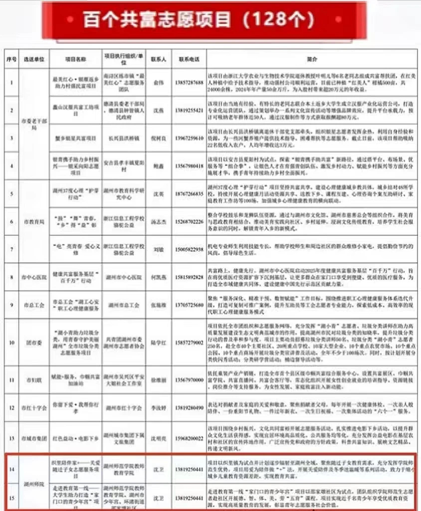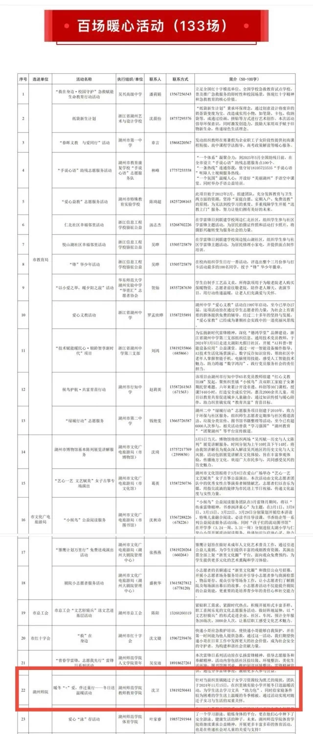 在2025年湖州市“家园志愿 就在身边”暖心服务“3个100”征集活动中,我院“织里陪伴家+——关爱随迁子女志愿服务项目”“走进教育第一线——大学生助力打造‘家门口的青少年宫’项目”入选“百个共富志愿项目”,此外,“暖冬‘+’爱,伴迁童行——冬日送温暖”活动入选“百场暖心活动”。
