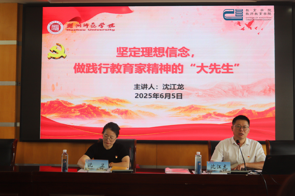 6月5日,湖州师范学院(中校区)教师教育学院下载在10-512教室举行2025届毕业生党员教育大会,党委书记沈江龙讲授“深学笃行作表率,星火相传映初心”主题党课,党委副书记沈卫主持会议,学院辅导员、全体毕业生党员参加。