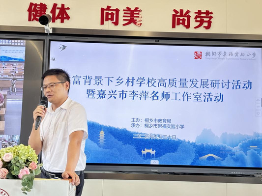 为深入探讨共同富裕背景下乡村学校高质量发展,探索“双新”背景下乡村学校课堂教学改革,促进乡村教师专业成长,9月30日桐乡市教育局主办、桐乡市崇福实验小学承办了“共同富裕背景下乡村学校高质量发展研讨活动暨李萍名师工作室活动”。活动在桐乡市崇福实验小学举行,参加人员有桐乡市教育局及崇福镇相关领导、桐乡市各乡村(镇)小学分管教学副校长、语文骨干教师以及李萍嘉兴市名师工作室全体成员。中心副主任刘佳博士应邀参加了相关活动。