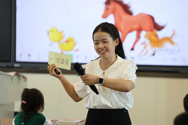 随后,同福学校的钱伊老师从智趣课堂的要求出发,作了题为“智趣课堂的多样呈现——《雪地里的小画家》评课”的报告,从智学、趣教、慧评三个方面对同课异构的课堂进行了评价。
