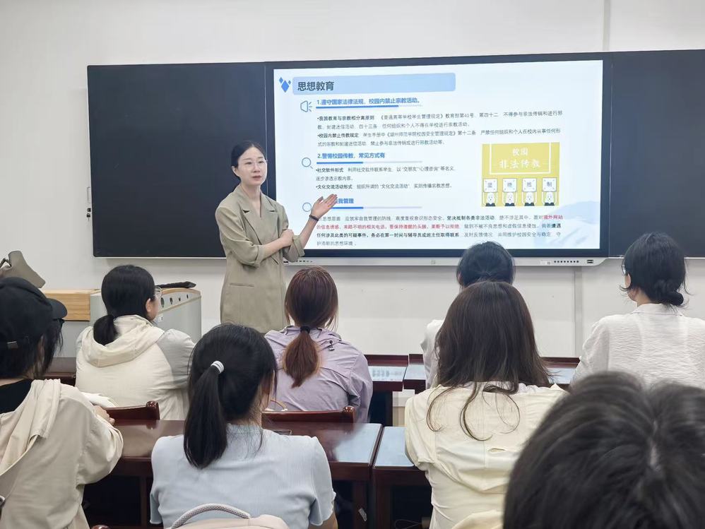 学院党委副书记沈卫以“四个引路人”为纲,从角色定位、职责内涵、工作方法、应急处置四方面展开专题辅导。她提出班主任工作“五要五忌”准则,并结合校园真实案例,强调突发事件处置需做到“三到位”:警示宣传到位、应急响应到位、公平处理到位,切实筑牢校园安全防线。