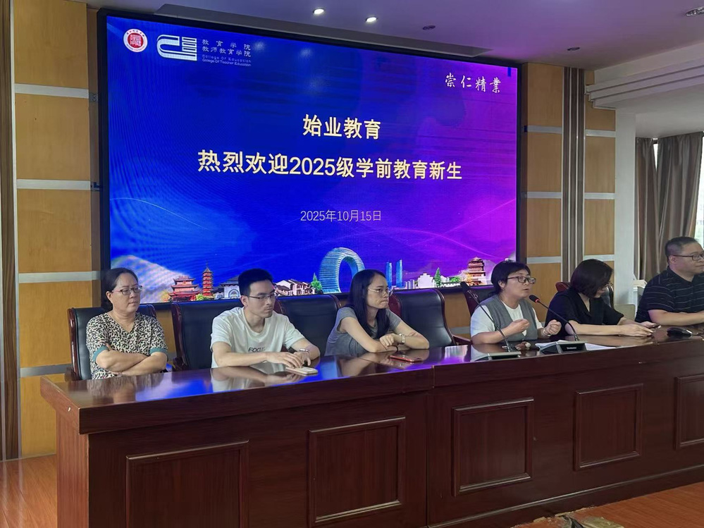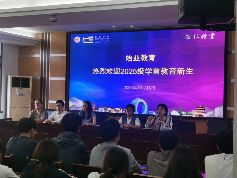 2025年10月15日星期三下午3:00,湖州师范学院湖州师范学院(中校区)教师教育学院下载学前教育专业为2025级新生开展了一场别开生面的“始业教育”活动。本次活动旨在帮助新生更清晰地规划大学四年生活,提升适应能力和综合素质。参与此次活动的有原学前教育专业系主任王云霞、学前教育系系主任孙彩霞、系支部书记俞睿玮、系副主任张金荣、王英杰、学前教育专业研究生负责人张文桂,2025级新生班主任代表金妙红,以及全体2025级新生。活动由俞睿玮主持。