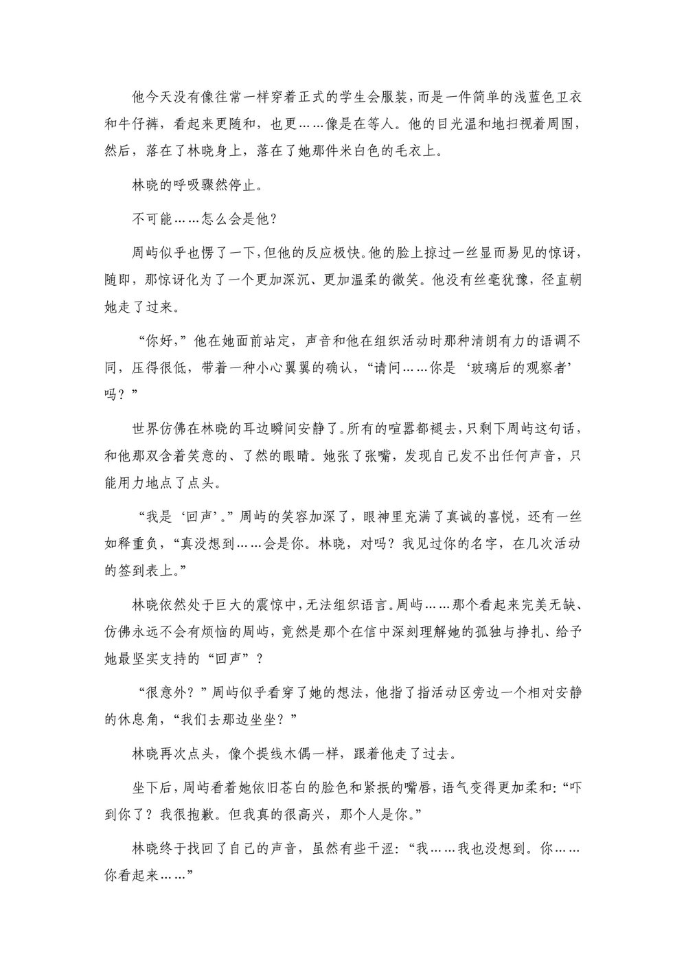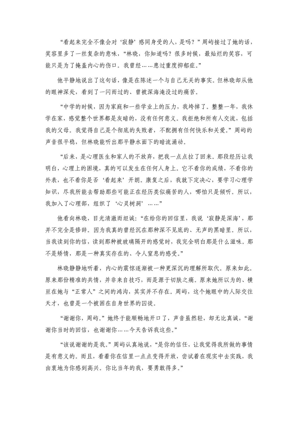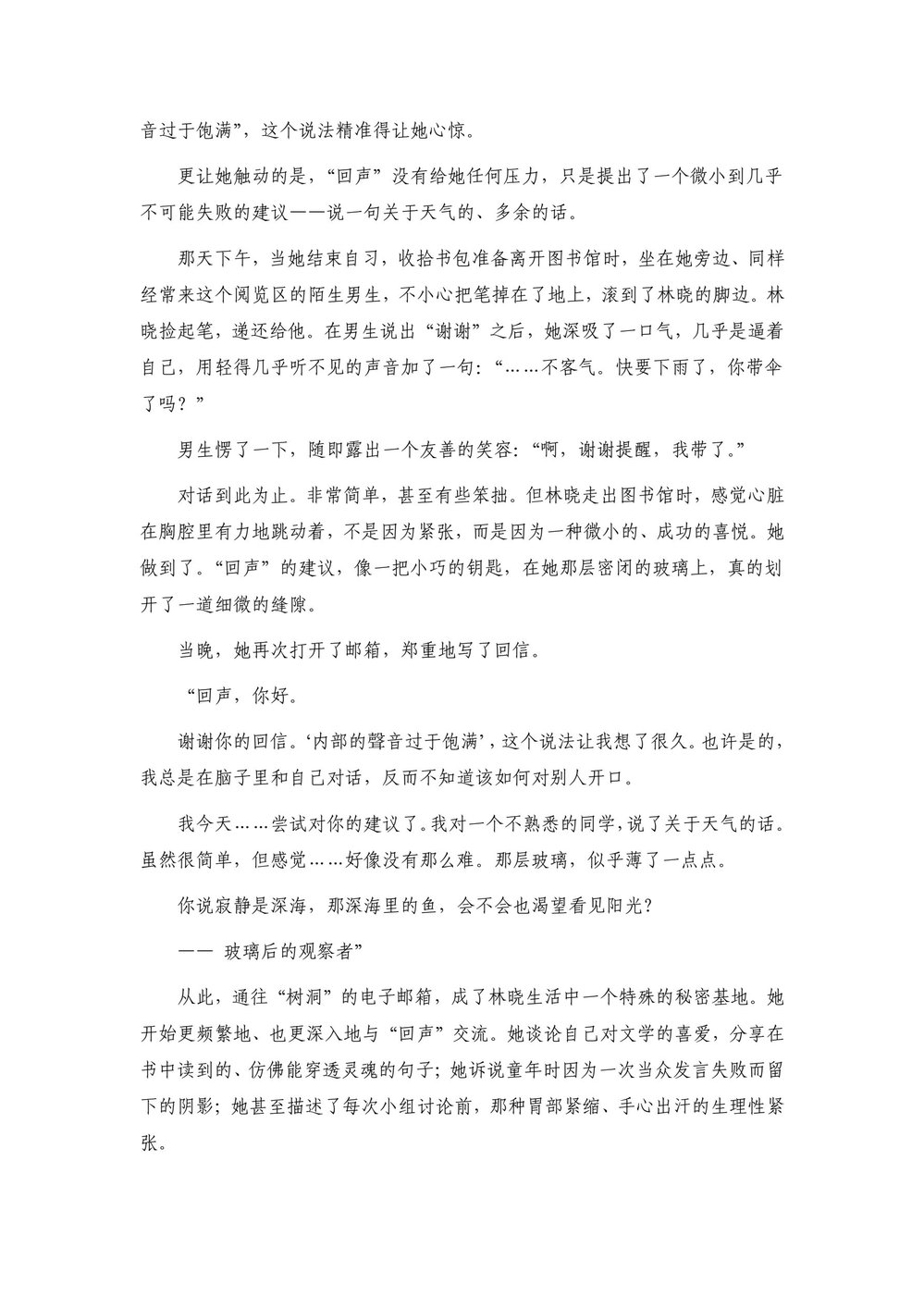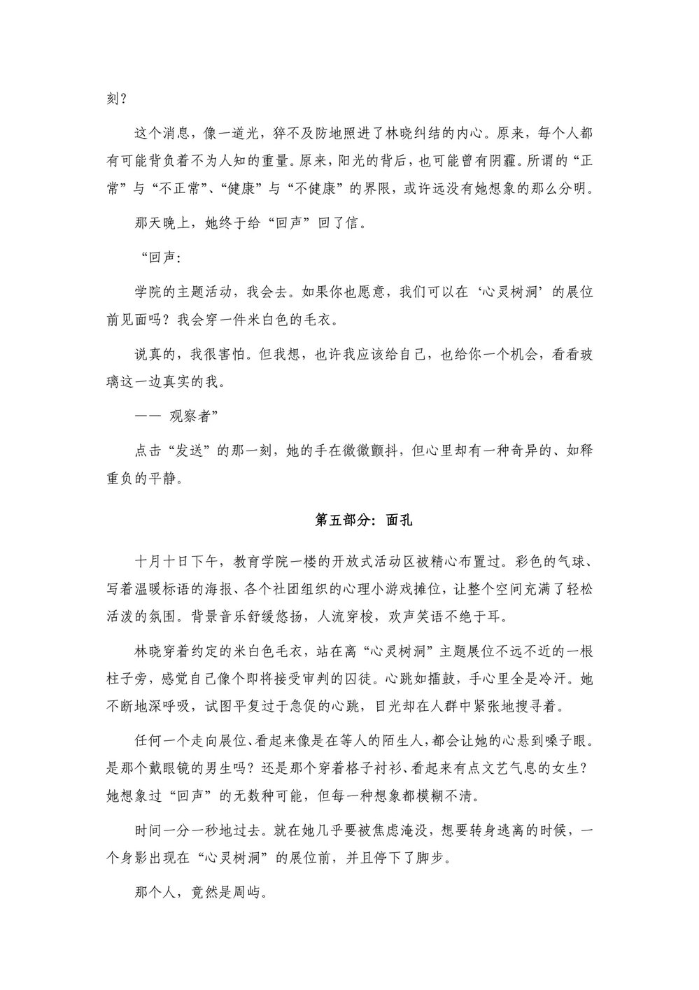 “心灵微光”微小说创作则以文字为媒介,承载成长中的感动与思考。同学们将那些关于陪伴、困境与突破的珍贵瞬间,凝练成一行行触动人心的句子。这些作品不仅展现了脆弱中的坚韧,更在字里行间传递出温暖与力量。
