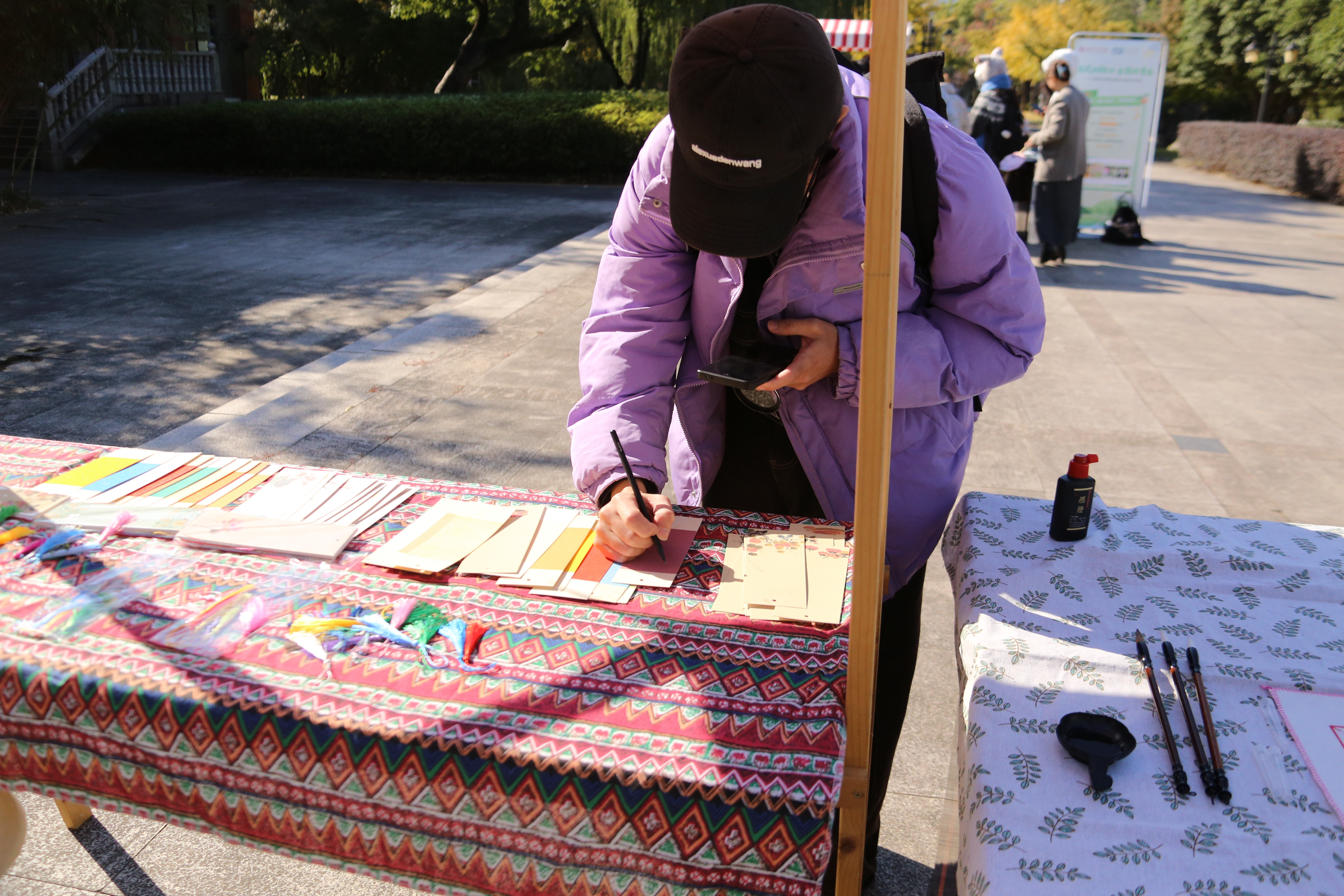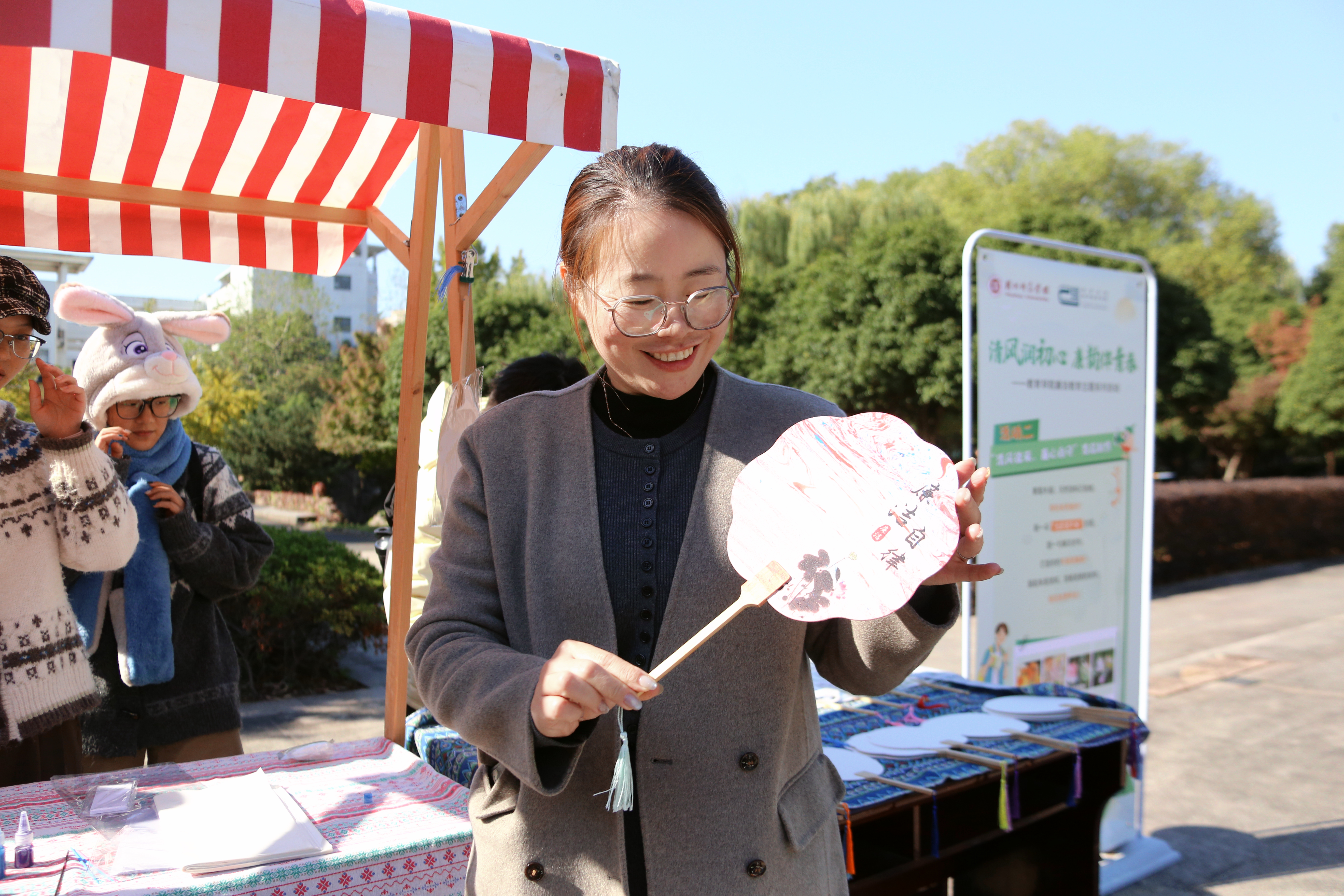 非遗漆扇制作区吸引大量师生驻足体验。“廉洁代言人”通过调漆、构图等环节,将色彩与清廉寓意巧妙融合于扇面。每一把亲手制作的漆扇,不仅承载着传统工艺的韵味,更传递出“清风徐来,廉心自守”的精神内涵。