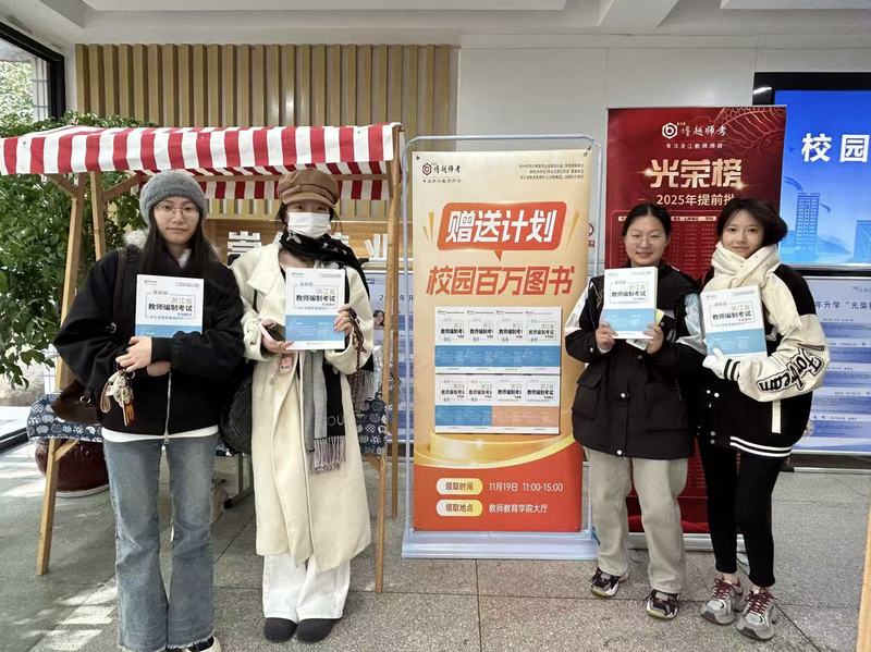 仪式结束后,博越教育面向湖州师范学院(中校区)教师教育学院下载学生举办了考编图书赠送活动,反响热烈。